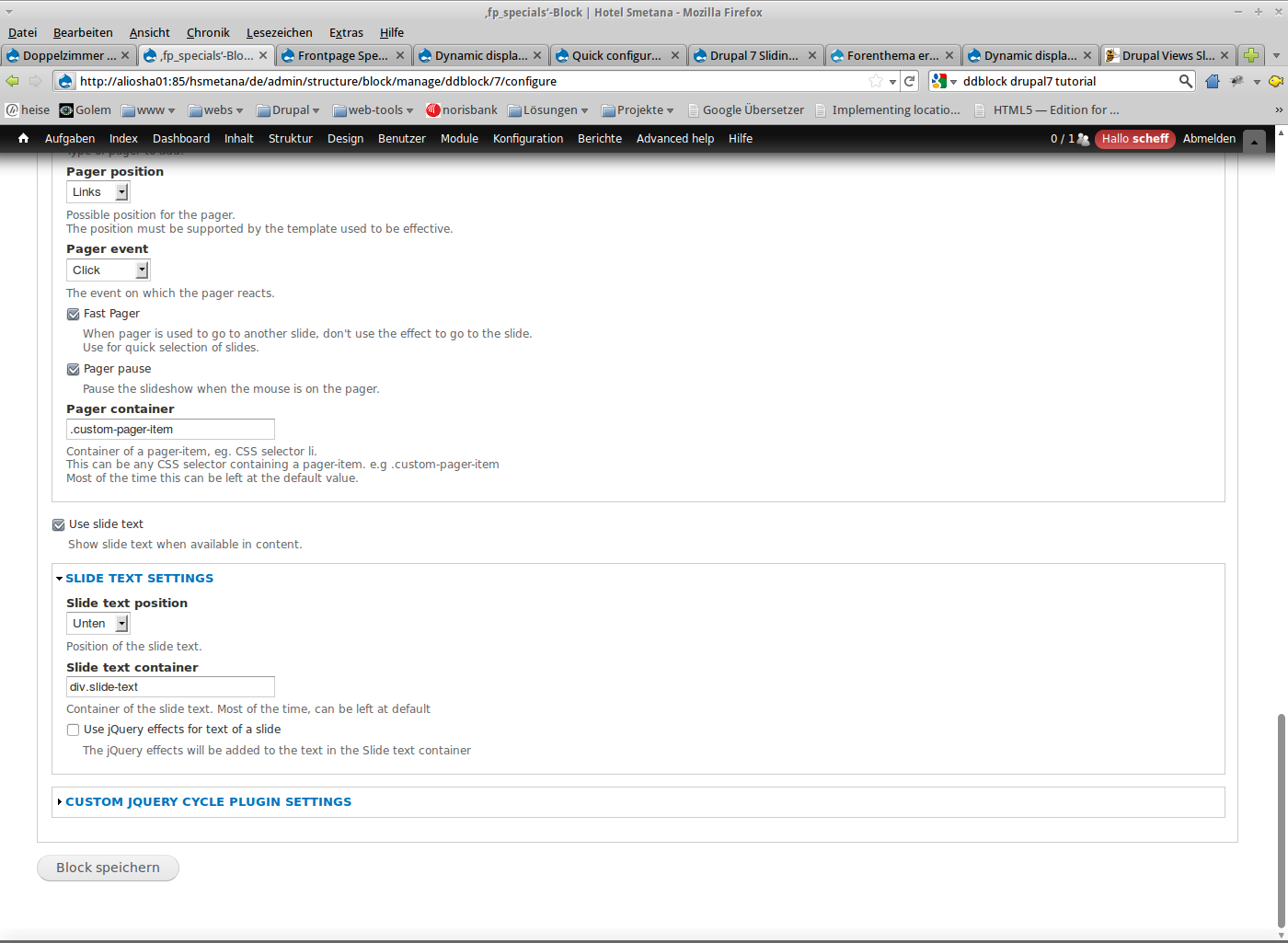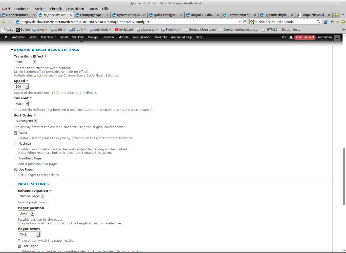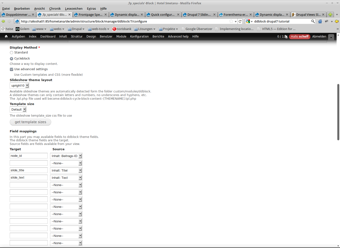 - installierte Module ddblock 7.x-1.0-beta1 und views 7.x-3.0-beta3