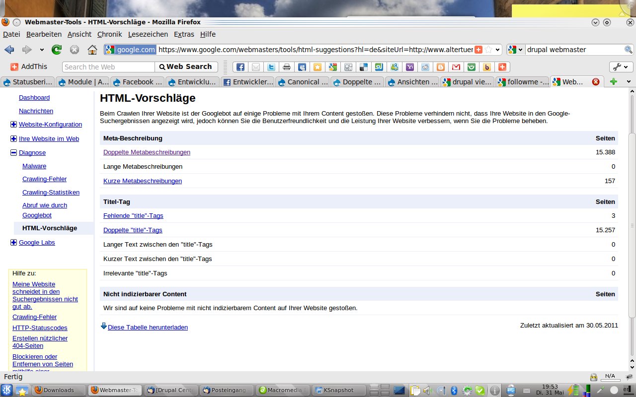 bin wieder mal auf der suche nach ein Problem und zwar wird bei Google Webmaster die Metatags/Content als doppelt gesehen und wenn man bei Google suche