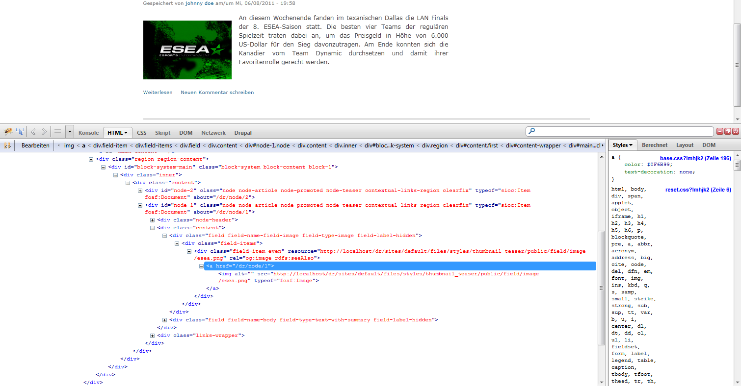 <img>-Element. Ohne Float erscheint der Balken auch dort. Man könnte dem<a>-Element auch eindisplay:blockzuweisen, aber wie gesagt, es ist nicht notwendig, da dieser Balken lediglich die Art und Weise von Firebug ist, solche Inline-Elemente anzuzeigen.Ich hab im Moment leider kein