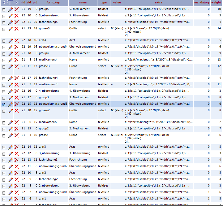 Da steht sie 4. Überweisung vor der ersten. Hab euch mal den Inhalt von webform_component angehängt. Denke mal, hier liegt das Problem.
