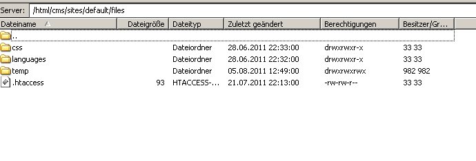 gut, also das angegebene verzeichnis ist vom provider her und liegt unter meinem root-verzeichnis oder hauptverzeichnis. dort habe ich keine zugriffsmöglichkeiten noch kann ich an diesen ort die zurgriffsrecht verändern. sozusagen würde dann auch keine veränderung möglich sein, in den verzeichnisberechtigungn von drupal.