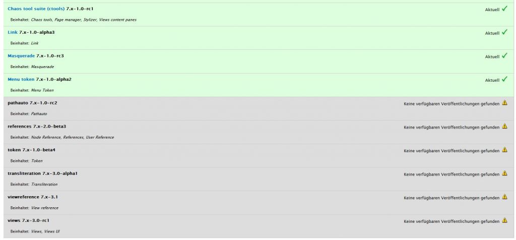 Berichte -> verfügbare Aktualisierugen = die ersten Module grün, die letzten grau