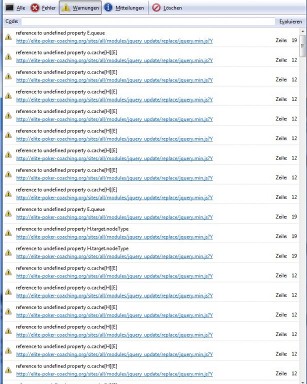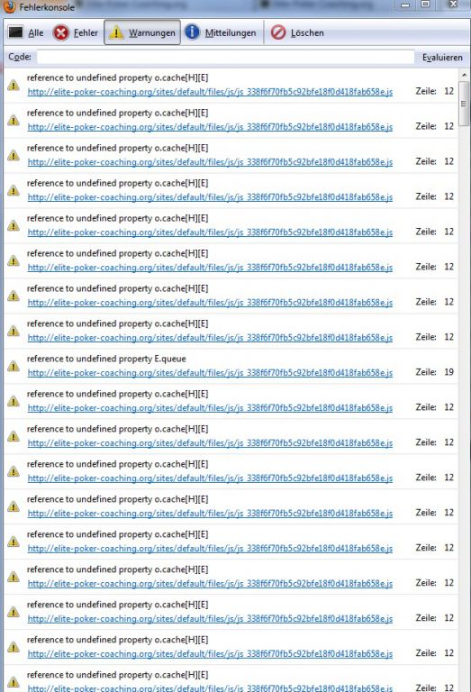 Nun sehe ich bei Firebug das Warnungen auftreten die sich immer wiederholen wie undefined property ua.