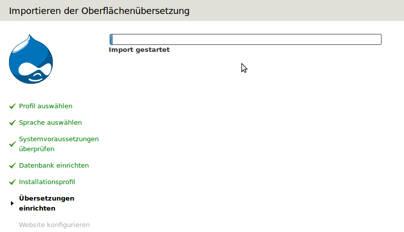 Ich wollte mir eben eine neue Drupal Version aufsetzen. während des importierens bleibt der Installer jedoch einfach stehen, beim Versuch die deutsche Sprachdatei zu installieren. Evtl. Rechteproblem? Der Installer meinte eigentlich es passt alles?
