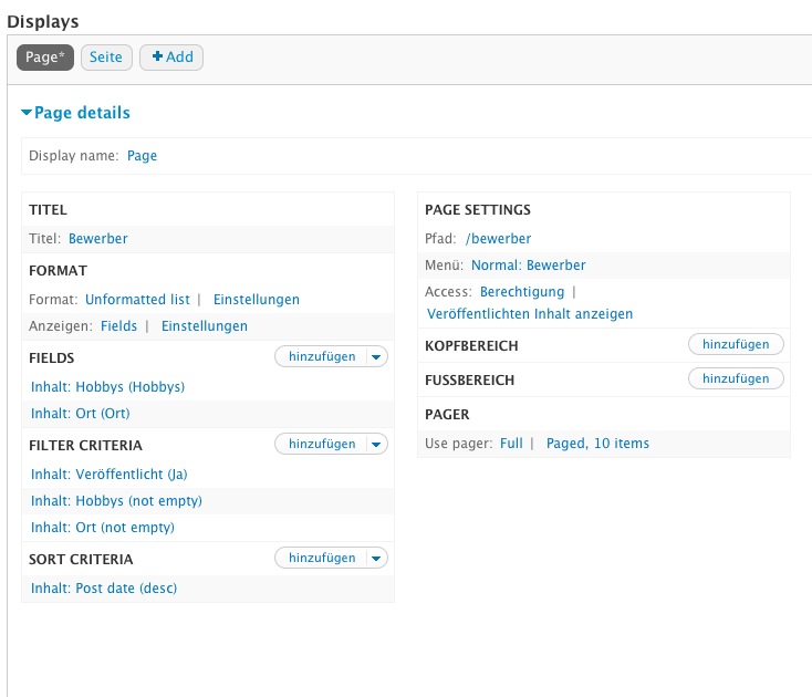 Nun möchte ich einen View erstellen, der mir alle Einträge anzeigt, in dem etwas im Feld Ort und etwas im Feld Hobby steht. Vor allem möchte ich nur diese beiden Felder in der Liste angezeigt bekommen, nicht alle Felder des jeweiligen Datensatzes. Ich bekomme aber immer den kompletten Datensatz angezeigt. Was mache ich falsch? Ich hoffe, ich konnte mich einigermaßen verständlich machen, es ist immer etwas schwer zu beschreiben, wenn man noch nicht richtig im Thema ist.
