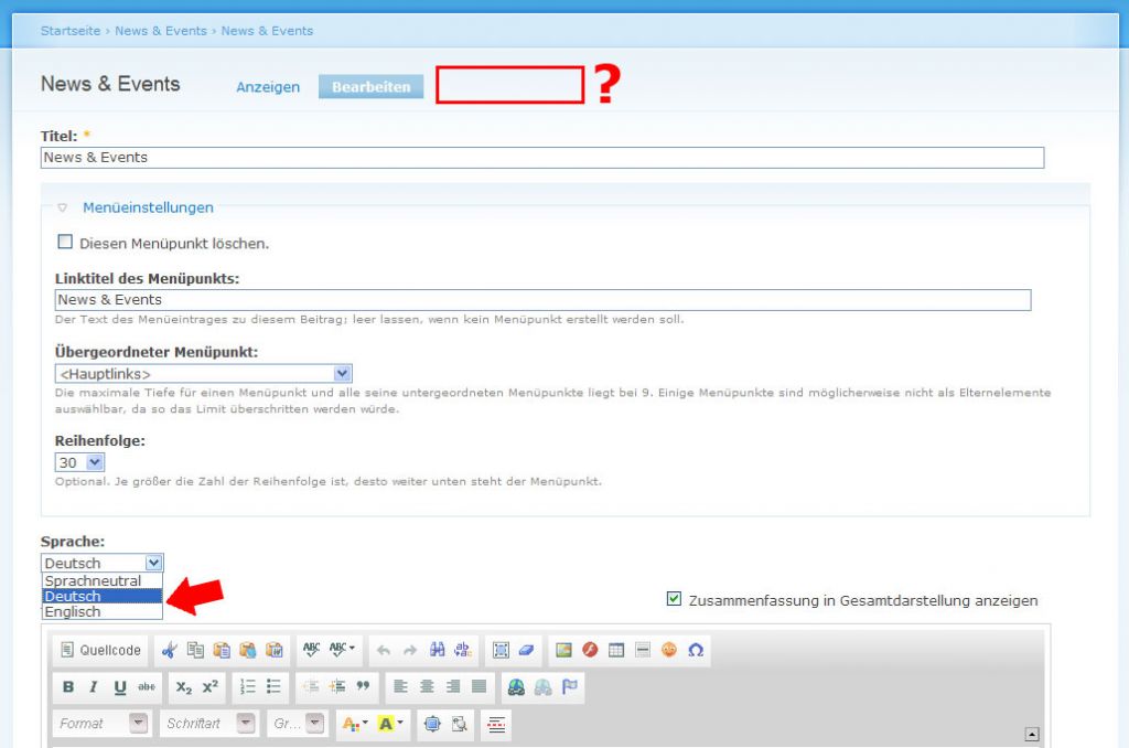 ein Kunde wünscht eine zweisprachige (de/en) Website, die mit Drupal realisiert wird.