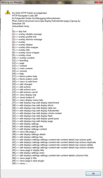 Views geht nicht mehr- Fehlermeldung AJAX-HTTP-FEHLER