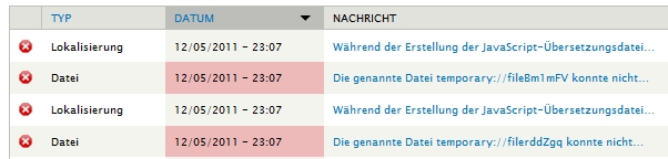 "Während der Erstellung der JavaScript-Übersetzungsdatei für die Sprache Deutsch ist ein Fehler aufgetreten."