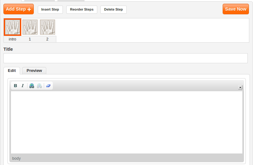 Also anhand des Bildes und Deiner Beschreibung würde ich sagen, Du möchtest mehrere Nodes des gleichen Inhaltstypen nacheinander erstellen und nicht einen Inhaltstypen in mehrere Schritte unterteilen (das ist nämlich der Sinn von [do:multistep Multistep], [do:msnf Multistep Nodeform], etc.).