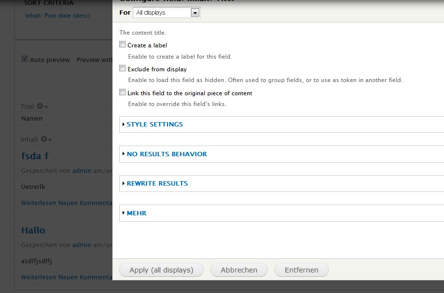 Ich will einen View erstellen, bei dem nicht auf das entsprechende Node verlinkt wird. (ich will eine Mitarbeiterliste ausgeben und nicht auf jeden einzelnen Mitarbeiter verlinken)