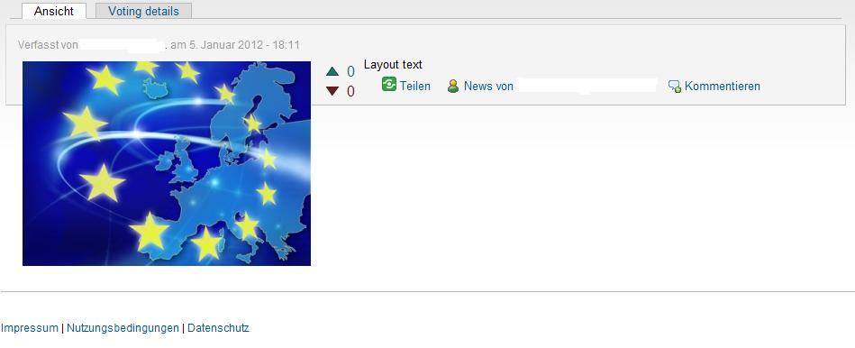 Ok, muss ich wohl machen :-) Jetzt wurde der CSS Befehl erkannt. Nun sieht das ganze noch abendteuerlicher aus. Nun wird der Text und die Elemente unterhalb des Blogs wie "Blog von Name", "Teilen", "Kommentieren" zusammen mit dem Text rechts vom Bild angezeigt. Normalerweise sollte die Blogansicht in etwa so aussehen. Titel, Bild mit Textfluss rechts vom Bild und darunter die Elemente "Blog von Name", "Teilen", "Kommentieren". Nun sieht es wirklich etwas chaotisch aus, da das Bild einfach nicht als Tabellen Content erkannt wurde und der graue Hintergrund schon in dem oberen Drittel des Bildes endet. Außerdem sind die Elemente "Blog von Name", "Teilen", "Kommentieren" und der Text nicht büdig ausgerichtet so dass es nicht gut aussieht. Kann ich dafür nicht eine tpl Datei benutzen so wie es bei nodes möglich ist? Im Anhang habe ich ein Screenshot beigefügt.