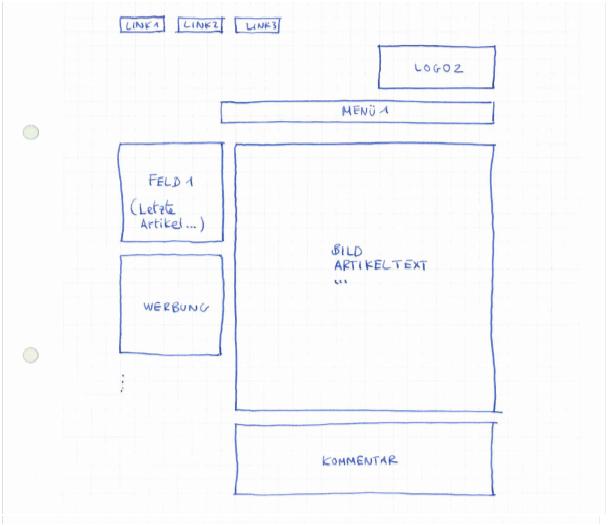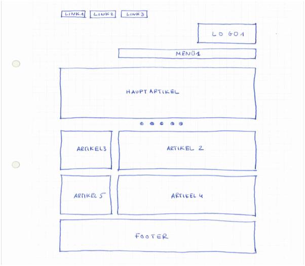 Man sieht ein unterschiedliches Bild fürs Logo. Eine Region für Text usw. Und andere Regionen für beliebig viele Blöcke (Bsp. Werbung, Letzte Nachrichten,...)