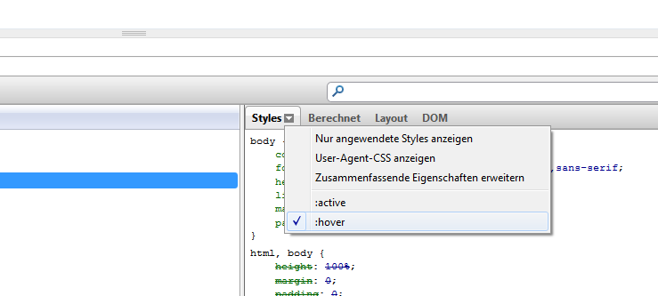 Danke, ich habe jedoch das Element :hover nicht im Quellcode entdeckt. Es sollte doch auch im Firebug sichbar sein, oder?