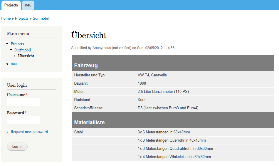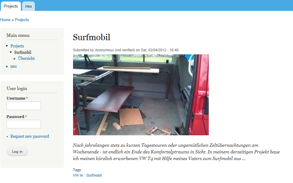 - Untermenüpunkt "Surfmobil" von "Projekte" als Artikel erstellt