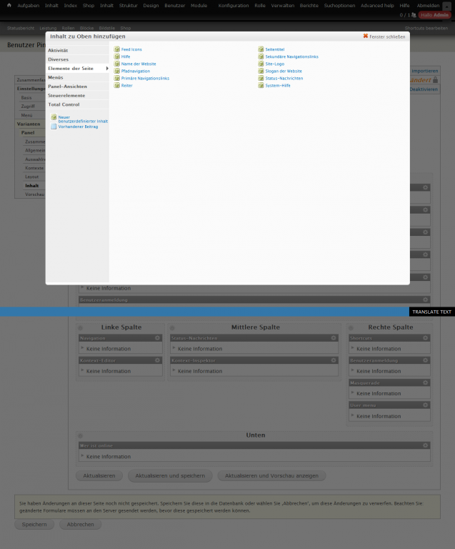 Vielleicht fehlt mir ein Modul Snippsel oder Zusatz-Modul - für Panel.
