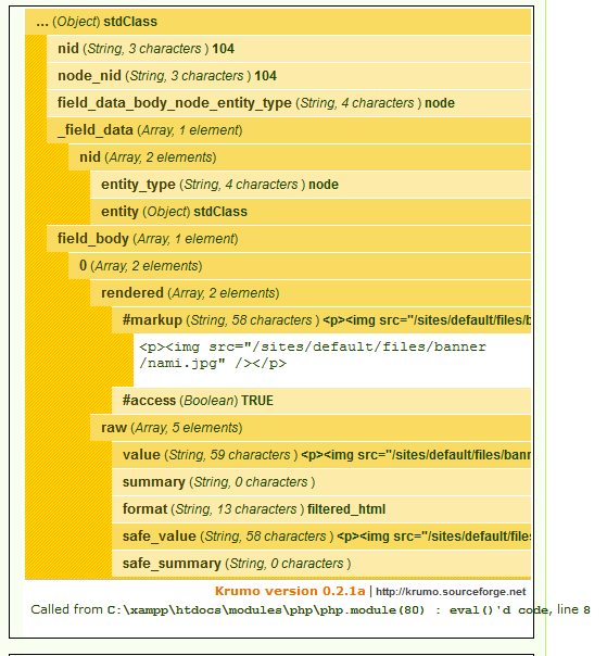<?phpprint($dummy_a->field_body['0']['raw']['value']);
