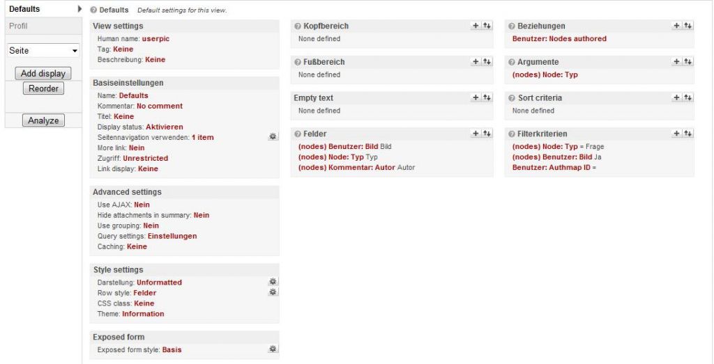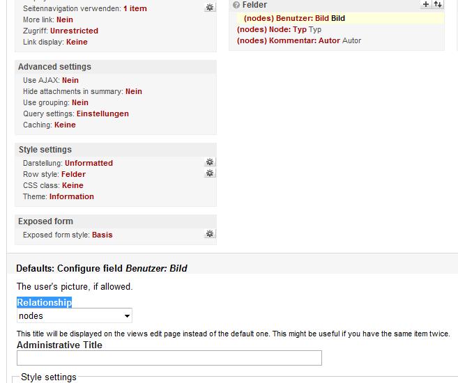Unter "Felder" nur "Benutzer: Bild"