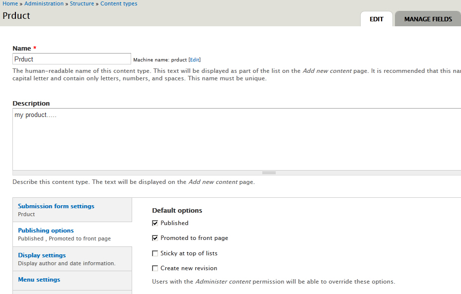 aber ich weiss nicht, wie kann ich die Default options: "Published" und "Promoted to front page" auf unpublish und nicht auf Frontpage setzen.Das heißt, die Kreuz weg lassen. Sehe Anhang.
