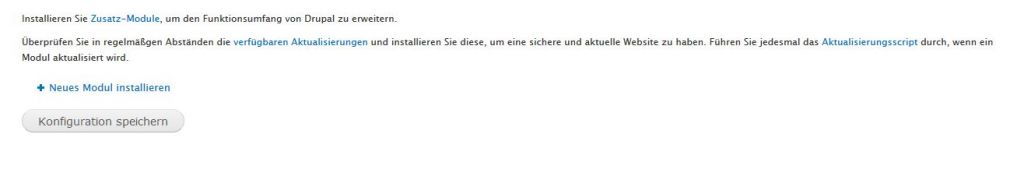 Ach halt, ohne Menü kommst du ja gar nicht dahin? Falsch! In Drupal ist fast jede Seite über die Adresszeile aufrufbar. Versuch's mal mit deinedomain.ch/admin (ab jetzt lasse ich das "deinedomain.ch" weg!). Damit kommst du in das "Backend" von Drupal. Immer! Auch ohne "obere Leiste" (Toolbar)!