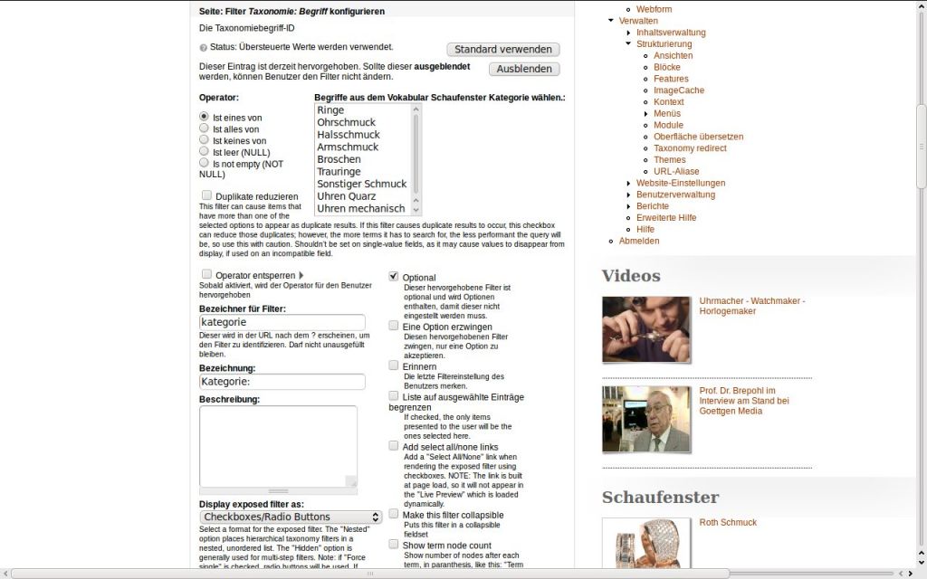 Folgendes Problem habe ich und zwar will ich siehe Screenshot die Ausgabe von einer Kategorie Filtern und komischer weise klappt nur der Preisfilter und die Taxonomie/Begriffe Filter leider nicht... (Kategorie, Material, weitere)