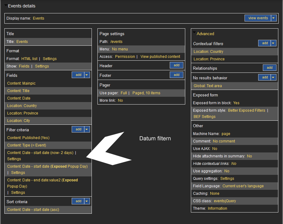 ich habe einen Inhaltstypen, eine Views erstellt für Termine.