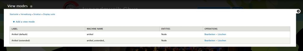 Damit kannst Du dann beim Erstellen/Bearbeiten eines Nodes festlegen, mit welchem View mode er angezeigt werden soll.