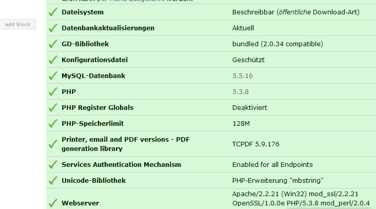 Zunächst hatte ich noch eine Fehlermeldung im Statusbericht, dass kein PDF-Tool eingebunden wäre.