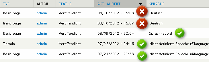 Bei den Pages mit den Eintrag Deutsch unter Sprache ist der momentane Stand mit aktivierten locale.Modul so das der Node Content überhaupt nicht in die DB gespeichert wird.