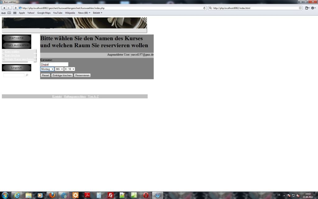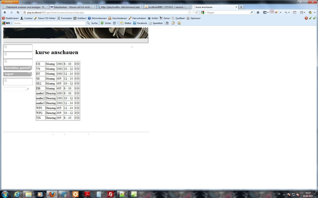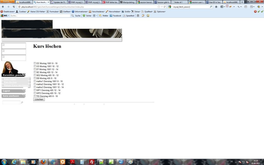 loggen können, kurse wählen können, kurse löschen können und kurse