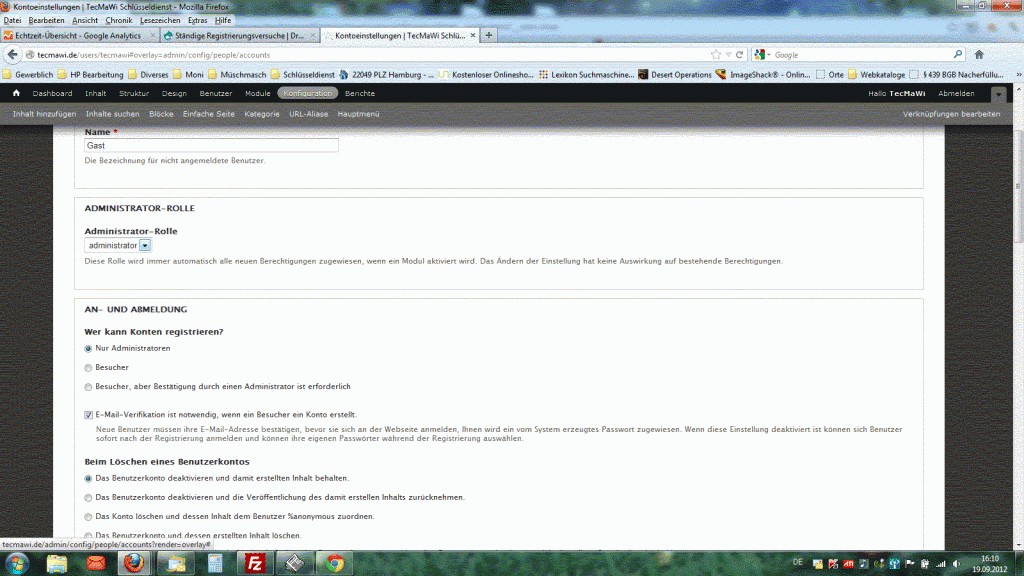 Bei meinem neuen Projekt http://schluesselnotdienstzentrale.eu sieht das anders aus. Da ist so gewollt, dass ich einem Besucher die MÖGLICHKEIT eröffne ein Konto zu beantragen.