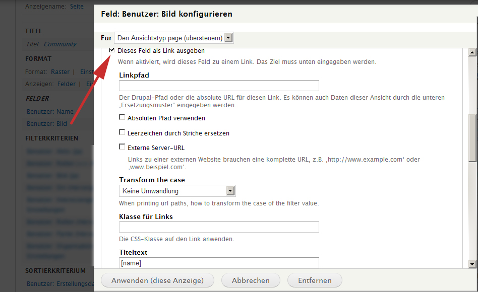 Und genau hier lässt sich ein "Titeltext" mit einem "Ersetzungsmuster" versehen.