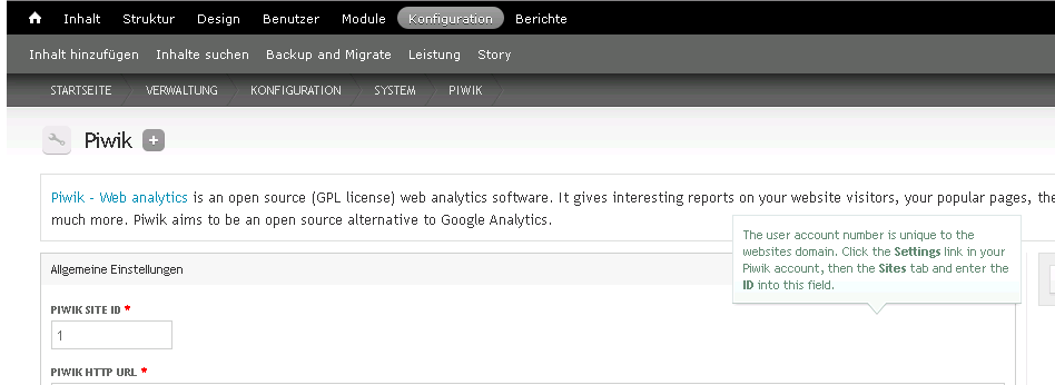 Die ID aus der Piwik-Installation in die Konfiguration des Piwik-Moduls eingeben.