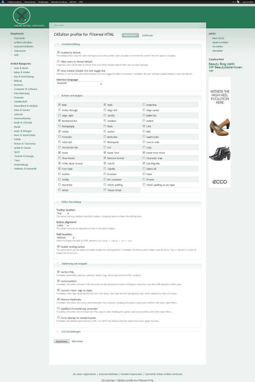 Ich benutze dabei das Eingabeformat Filtered HTML - CKEditor 3.6.3.7474.