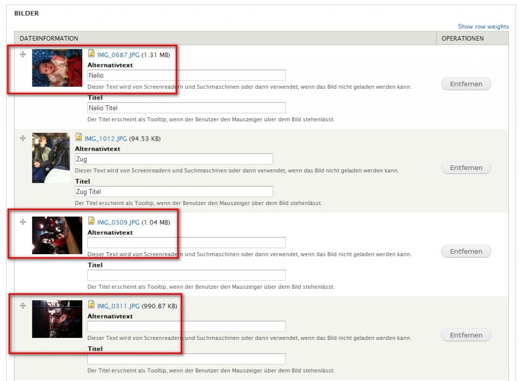 Wenn ich die Fotos auf meine Drupalseite hochlade, erscheint das Foto im Auswahlfenster in der Vorschau im Querformat - was ein netter Hinweis ist.