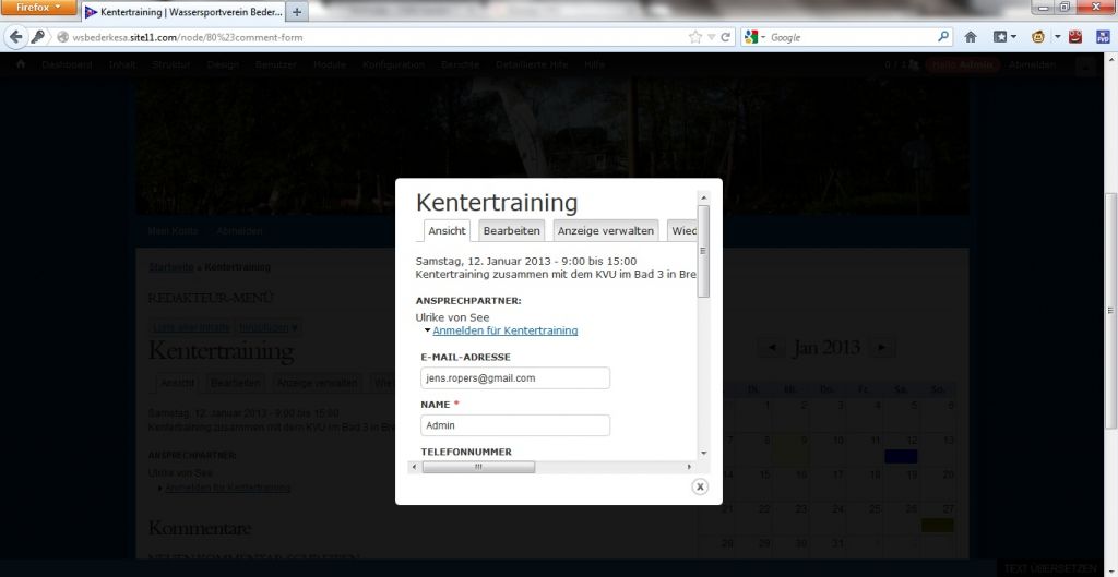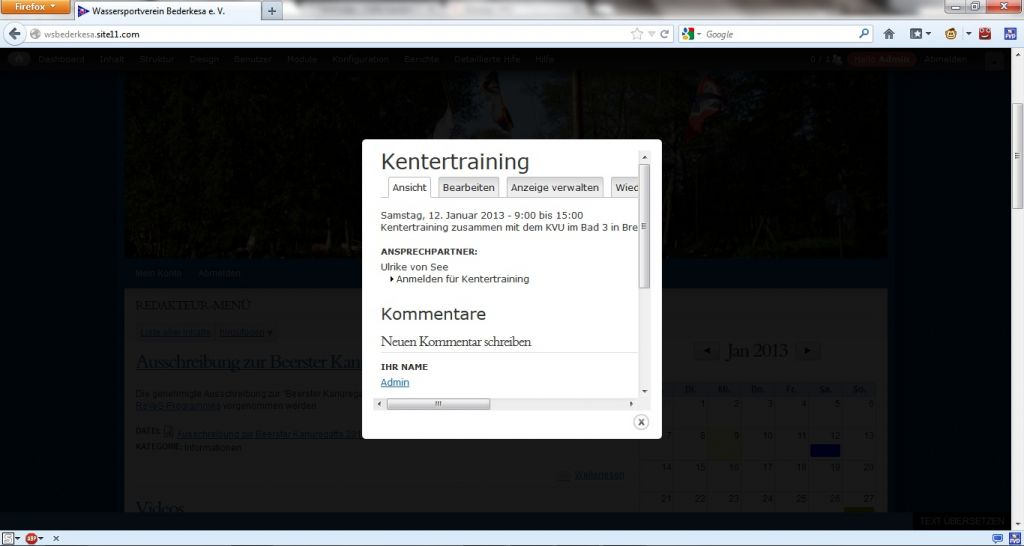 ich habe auf meiner Drupal-Seite (wsbederkesa.site11.com) einen Kalender für Veranstaltungen eingebaut. Dazu habe ich die Module "Full Calender" und Colorbox genutzt.