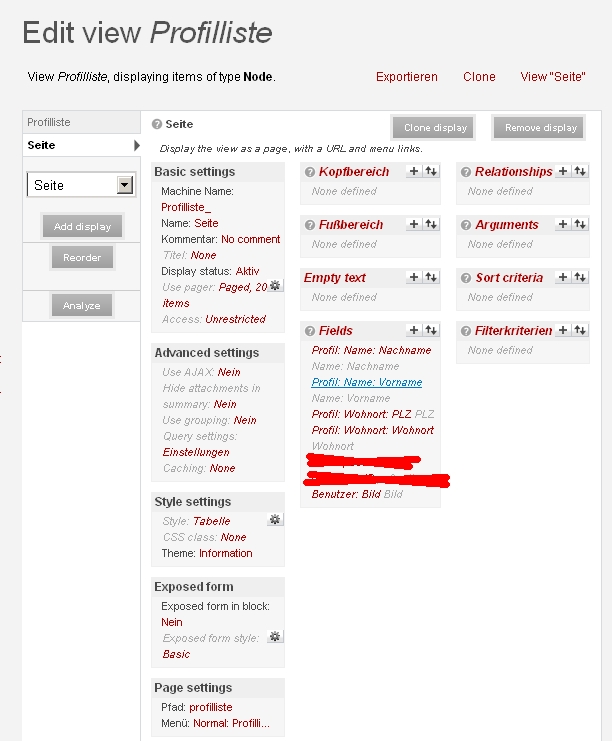 Ich sollte mir einen View erstellen und an diesem View Seiten anhängen die mir die "einzelnen" Inhaltstypen ausgeben (Unterseiten für die Referenzen). Anbei ein Screen von meinem erstellten View.