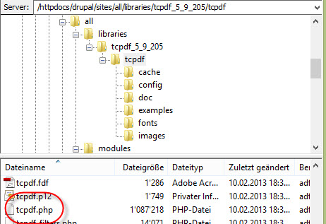 Was bedeutet das? Ist ja aus dem Print-Modul heraus. In der Installations-Anleitung steht, dass man TCPDF nur in den genannten Ordner (/httpdocs/drupal/sites/all/libraries/tcpdf_5_9_205/tcpdf) reinkopieren muss und Print macht alle Einstellungen selber.