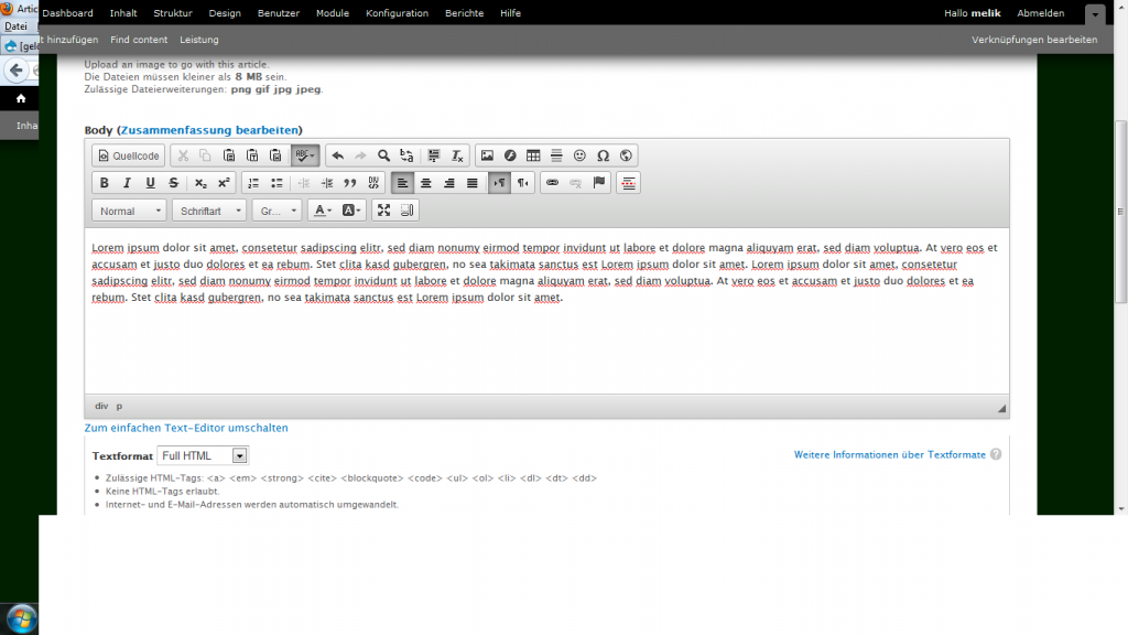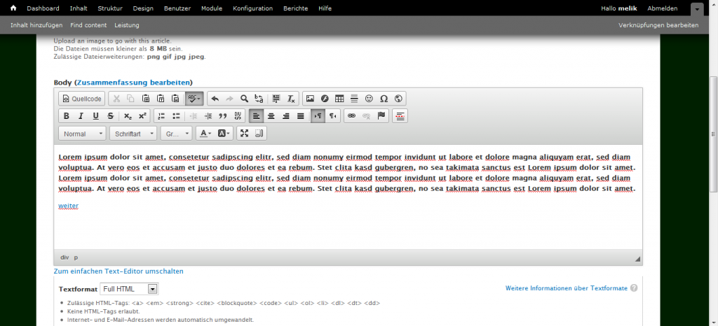 Ich benutze CKEditor als Full HTML. Eigentlich wenn ich einen Text bearbeite, kriege ich immer diesen Fehler.