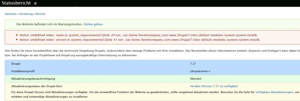 Notice: Undefined index: name in system_requirements() (Zeile 39 von /var/home/hertelcompany_com/www/Drupal7/modules/system/system.install).