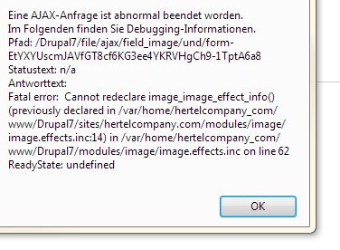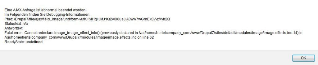 Wenn ich versuche einem Inhalt ein Bild hinzuzufügen, gibt es die Meldung "AJAX-Anfrage ist abnormal beendet worden".