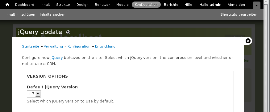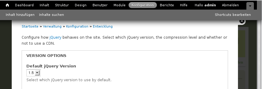 Ich hatte auf meiner Webseite sehr viele Fehler. Tabs wurden im Adminbereich durch die Shortcutleiste verdeckt, Views konnte ich nicht mehr abspeichern, Bildgallerien wurden falsch dargestellt... usw. Nur durch Zufall waren heute diese Fehler plötzlich weg, weil ich in jquery-update die jquery-Version von 1.8 auf 1.7 geändert habe. Liegt das an der jquery-1.8 Version oder sind meine Einstellungen falsch?