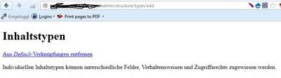 Ich habe 8 eigene Inhaltstypen angelegt und möchte letztlich 2 weitere anlegen. Das ist nun nicht mehr möglich. Inhaltstyp hinzufügen über admin/structure/types/add oder #overlay=admin/structure/types/add