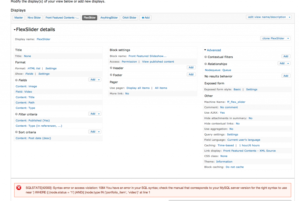 weiss jemanden, was zum Geier gemacht werden kann, diesen Fehler kommt in den Views for bei FlexSlider