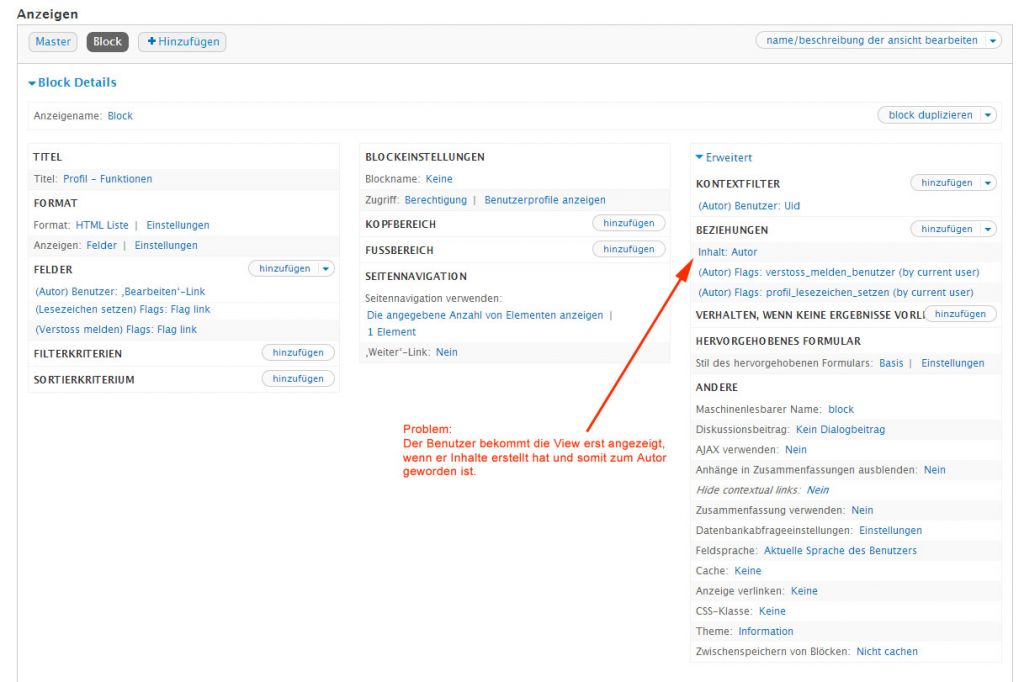 ich habe eine Block-View mit ein Paar Funktionen erstellt die im jeweils eigenen Benutzerprofil angezeigt werden sollen.