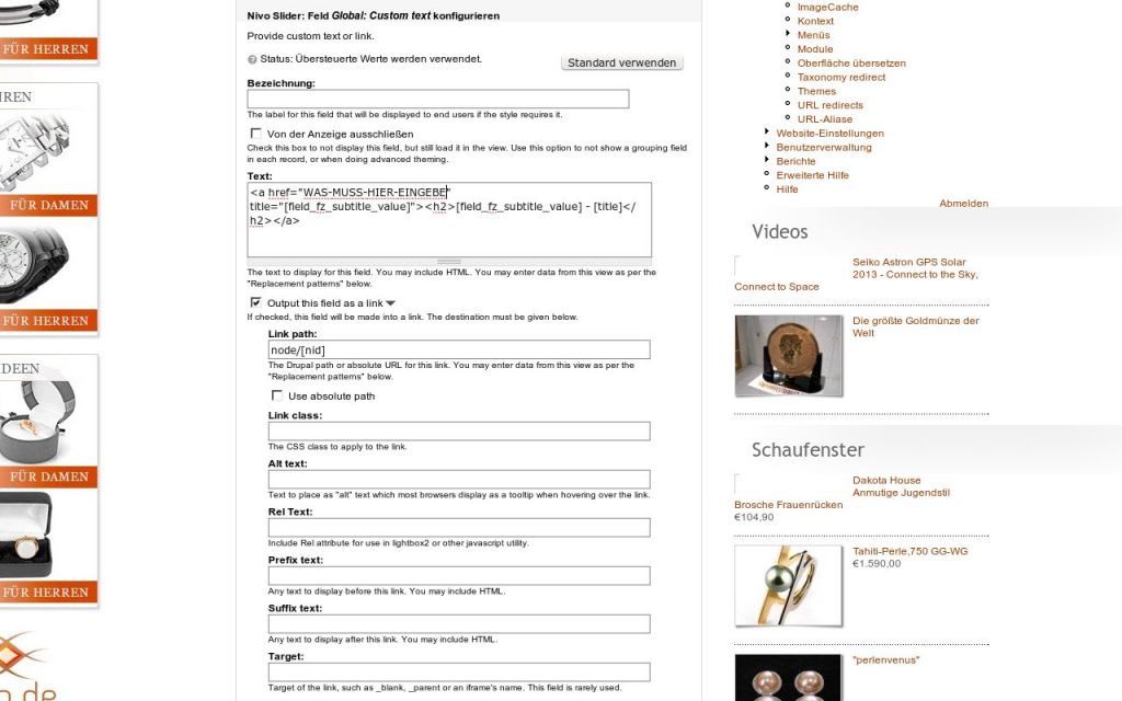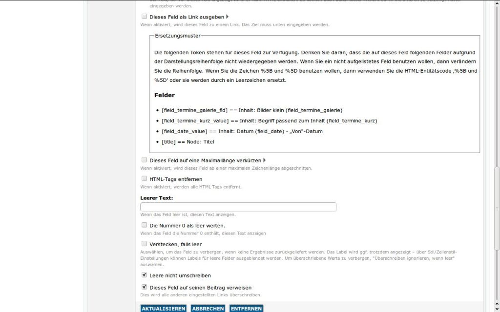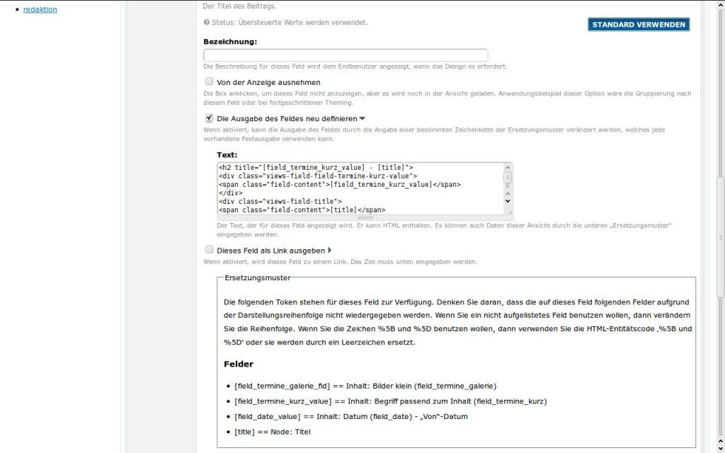 </h2>Bsp. HTML Gerüst in der View "Die Ausgabe des Feldes neu definieren":