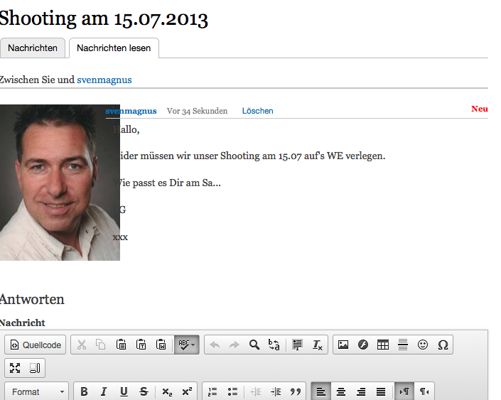 ich habe gerade Privatemsg installiert. Schreibe ich eine Nachricht an einen anderen User, dann wird gleich mein Bild mitgeschickt.