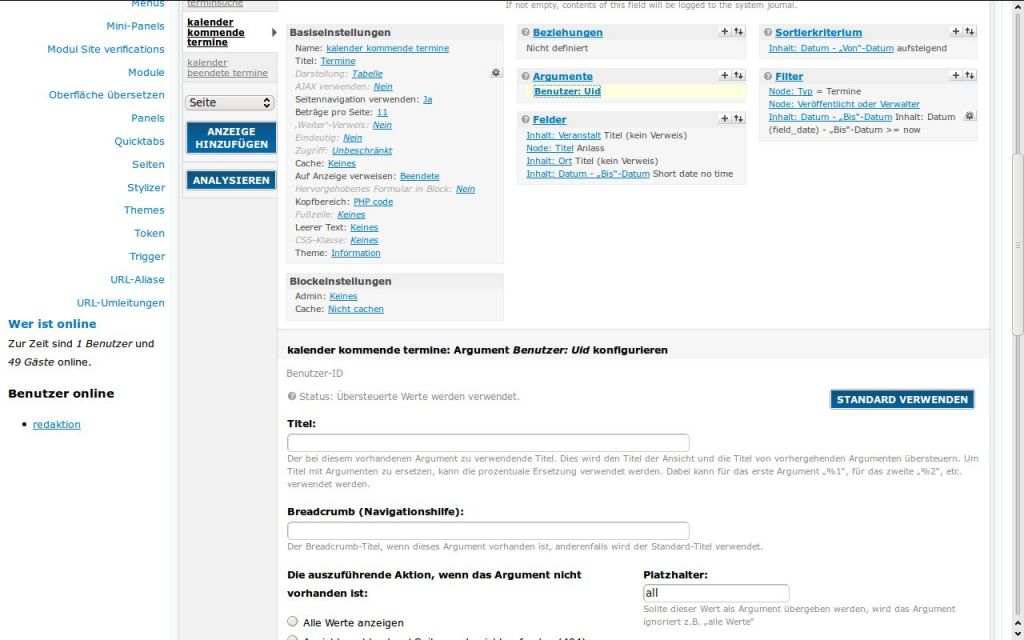 <?php print views_embed_view('termine', 'block_5', $uid); ?>Die Views habe ich nach dieser Anweisung erstellt : http://www.drupalcenter.de/node/39986 (Siehe Anhang)