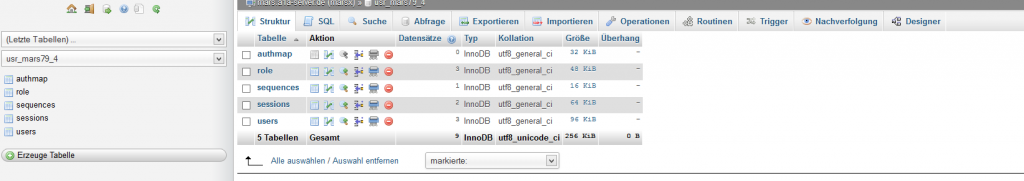 sequences - Diese .sql Datei importiert ihr dann in die leere Datenbank. Diese sollte dann wie auf dem Bild aussehen.