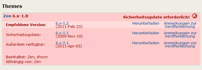 [gelöst] Theme "Zen" Sicherheitsupdate erforderlich - Keine Änderung der Meldung nach Upload des Updates per FTP