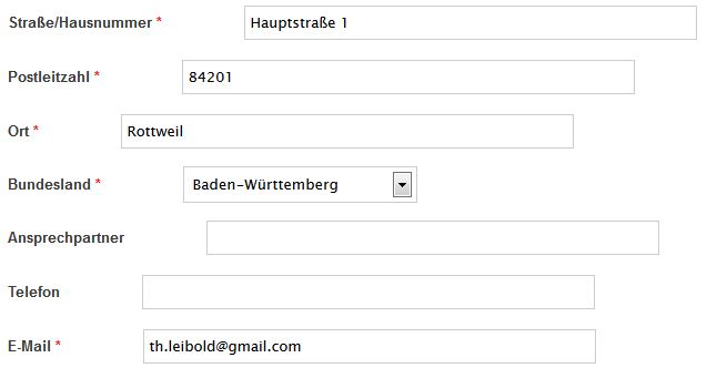 Nun habe ich das Label meiner Felder links neben dem Eingabefeld stehen. Ich versuche die ganze Zeit die Eingabefelder auf eine Linie zu bekommen. Da meine Feld-Labels immer unterschiedlich lang sind, sind die Eingabefelder immer auf verschiedener Höhe (zur Verdeutlichung habe ich ein Bild angehängt).